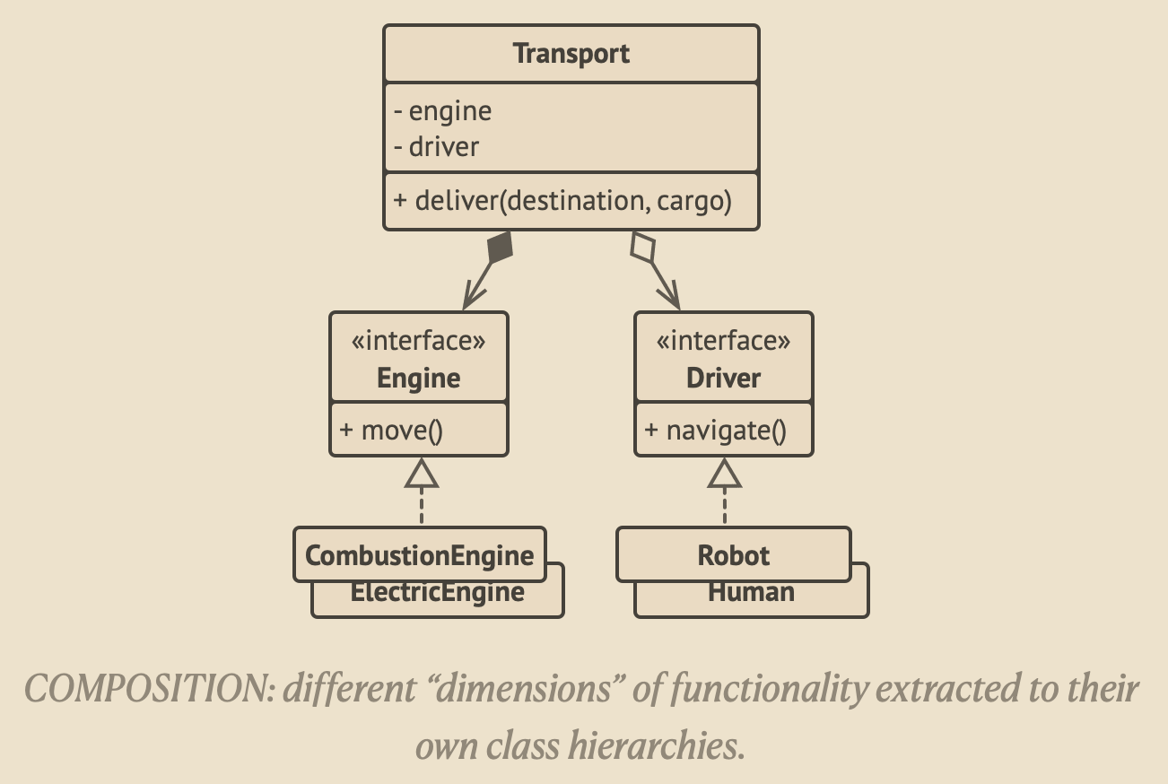The Strategy Pattern shown here is just one example of composition. This principle applies broadly in software design, leading to more maintainable, flexible, and understandable code.